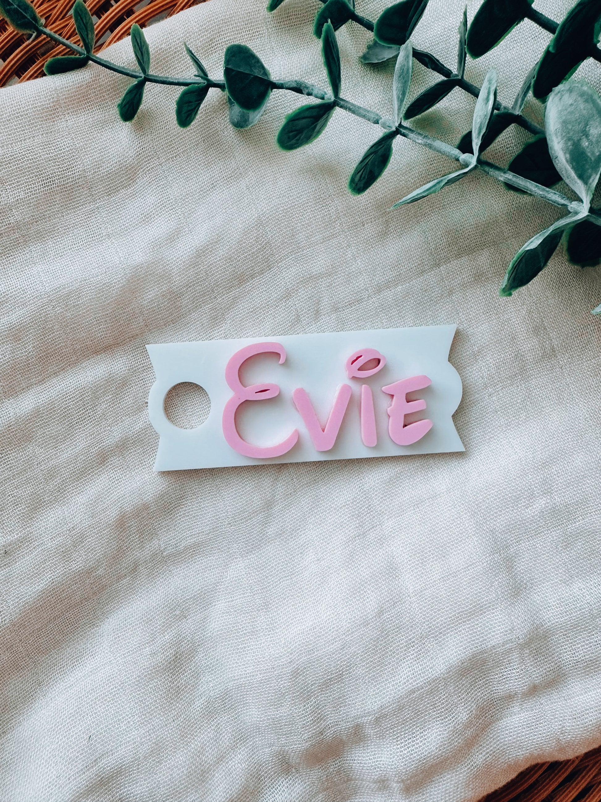 Our beautiful acrylic name plate tag can be personalised with your name (maximum 9 letters) The plate itself measures approx 82x35mm.